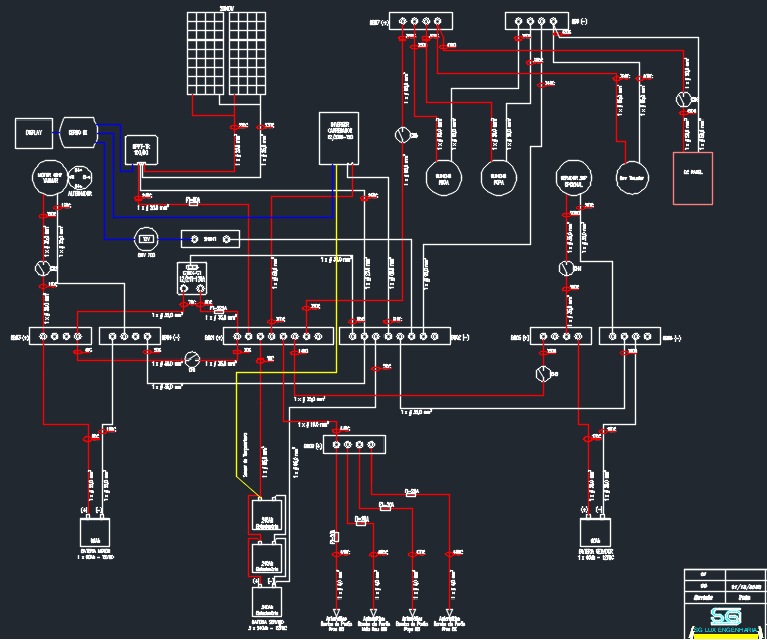Um esquema elétrico é uma representação gráfica que mostra as partes e as ligações de um sistema elétrico, como a instalação ou equipamento de um barco.