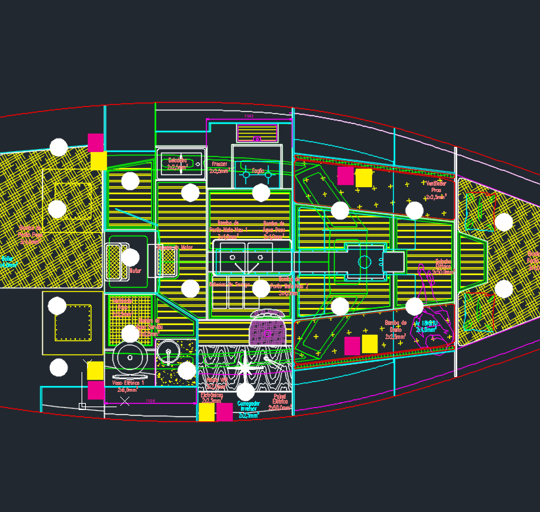 É um planejamento detalhado da instalação elétrica do barco, que inclui o posicionamento de equipamentos, quadros, baterias, instrumentos de navegação e fiação.